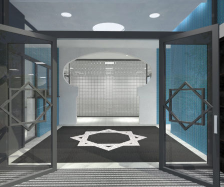 En aquesta intervenció ha pres molta importància la decoració dels espais i la simbologia dels elements arquitectònics, considerant el caràcter religiós de l’edifici. A les façanes hi predominen les simetries i l’emmarcat d’obertures a partir de mosaics de peces hidràuliques, disseny que s’ha completat amb la incorporació de dues torres verticals, símbols essencials de la cultura àrab.