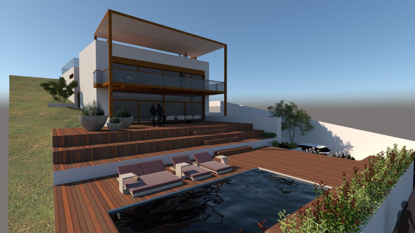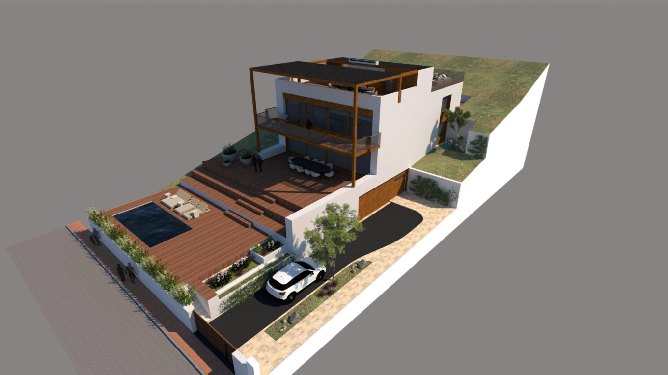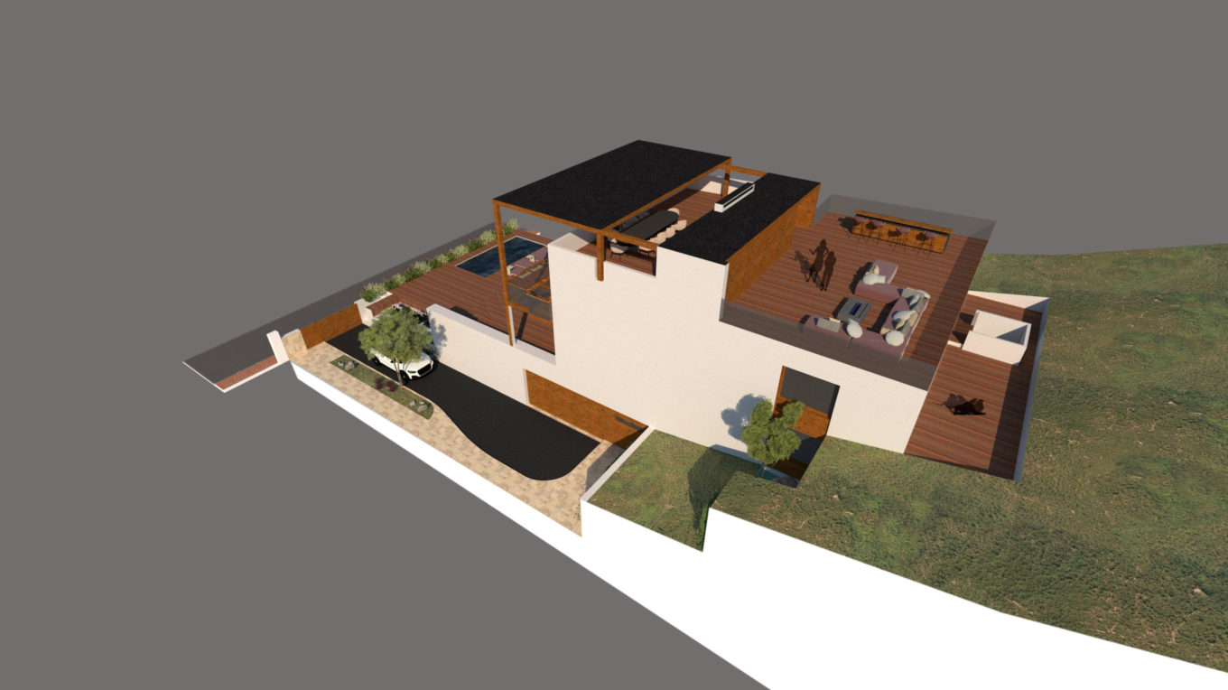L’edificació es defineix a partir d’un volum força compacte de quatre nivells que es complementa per un seguit de porxats que emmarquen i emfatitzen la seva presència. La relació de l’edifici amb l’exterior ha estat un factor clau alhora de projectar l’edifici. Per aquesta raó, el disseny de la vivenda també incorpora un seguit de patis interiors i espais a doble alçada que asseguren la relació visual entre els diferents àmbits de la llar i ratifiquen el caràcter majestuós de la construcció.