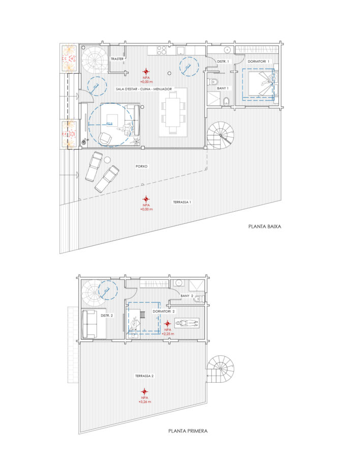 Aquest projecte planteja la remodelació i l’ampliació d’un habitatge construït a partir d’entramats lleugers de fusta. La intervenció, que s’executarà seguint el mateix sistema constructiu, proposa re-configurar la planta baixa per poder ampliar la zona de dia. Per fer-ho possible, es planteja re-ubicar l’escala interior i enderrocar part dels tancaments preexistents.