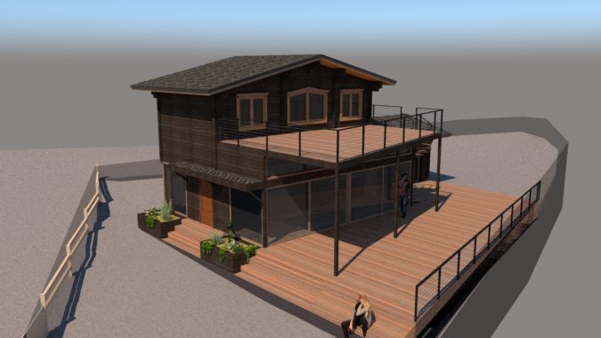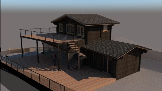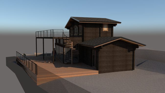 La intervenció també proposa la construcció d’un nou porxat i d’una plataforma sobre el jardí per tal d’establir una millor relació entre l’interior i l’exterior de l’habitatge.