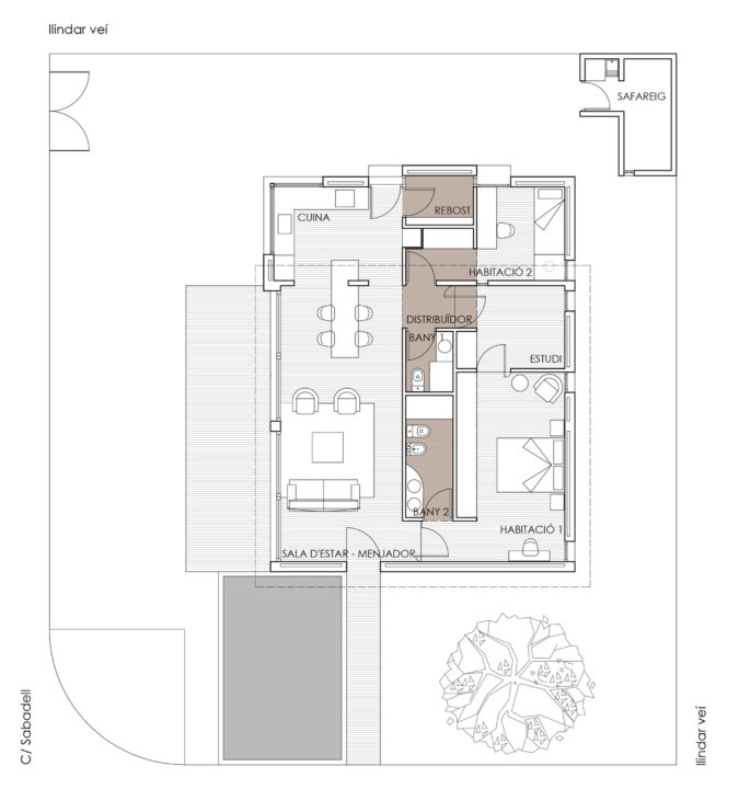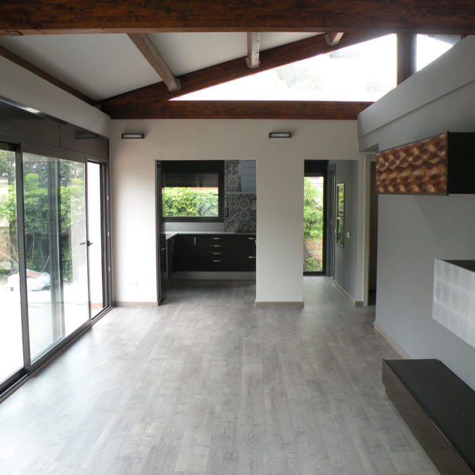 Els clients d’aquest projecte van adquirir un habitatge construït als anys 60 amb la idea de reformar-lo. L’edifici presentava una distribució força fragmentada i atapeïda, mentre que ells volien espais oberts i força diàfans. El projecte, doncs, planteja la reforma i ampliació d’aquest habitatge, modificant radicalment l’essència del seu interior.