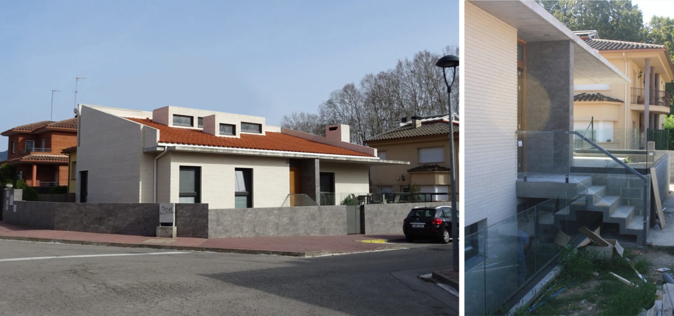 Els clients d’aquest projecte tenien clar que volien resoldre el programa del seu habitatge en una sola planta. La nova vivenda s’havia de situar en una parcel·la fent xamfrà, adossant-se a un edifici ja construït de dues plantes. En aquest sentit, l’habitatge s’ha configurat a partir d’un volum en forma de cunya per cobrir al màxim l’edifici veí, aconseguint que l’habitatge tingui la seva pròpia presència.