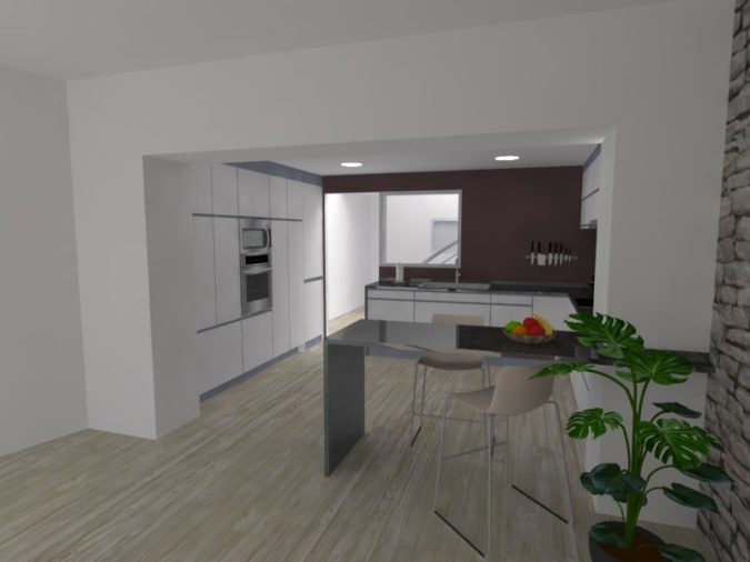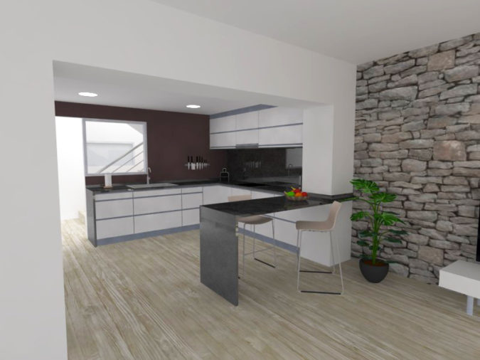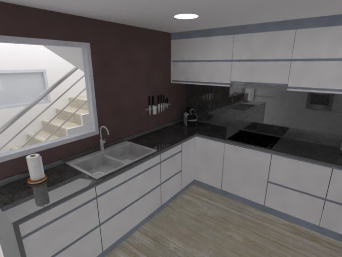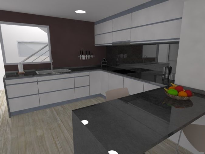 Por un lado, la reubicación de la cocina. En la edificación preexistente, esta se situaba en la planta baja, quedando totalmente desvinculada de la sala de estar. Con la reforma se plantea unificar dichos espacios, planteando un diseño abierto y diáfano.