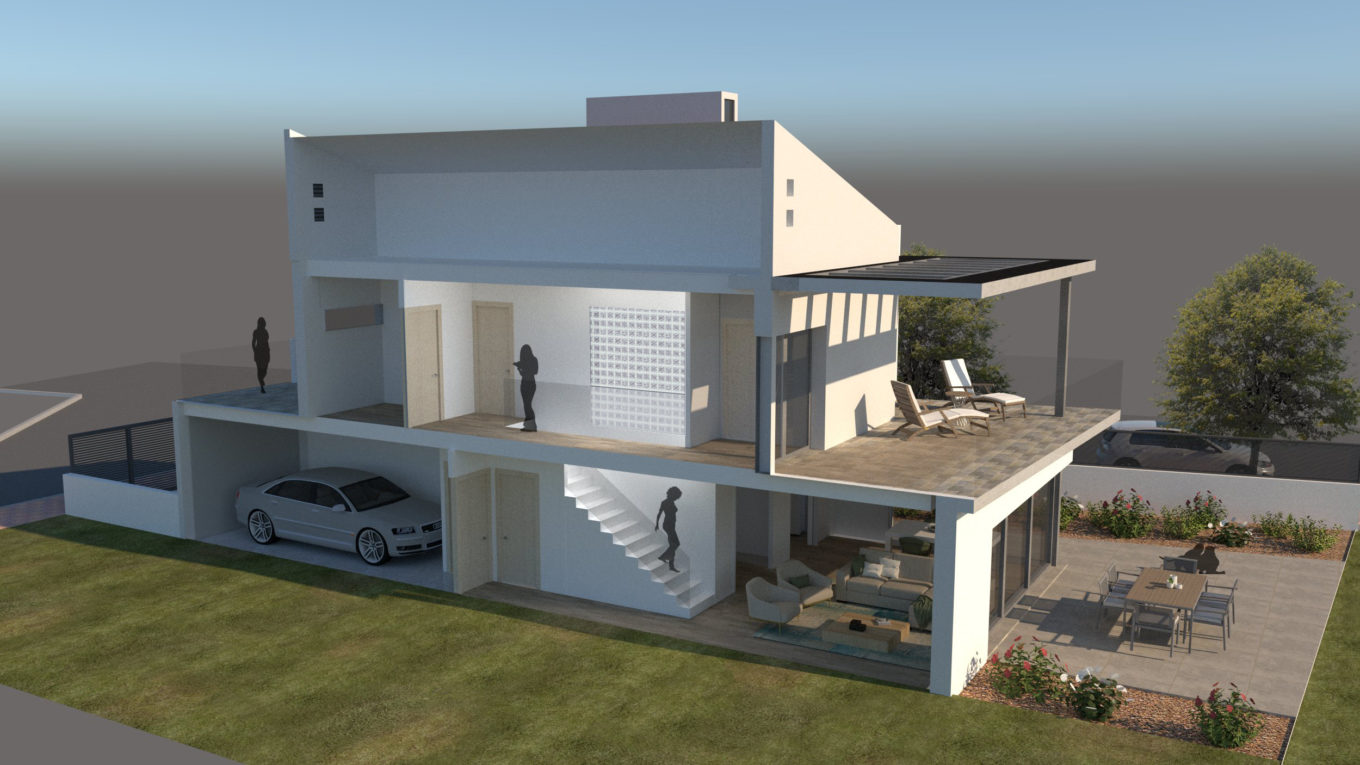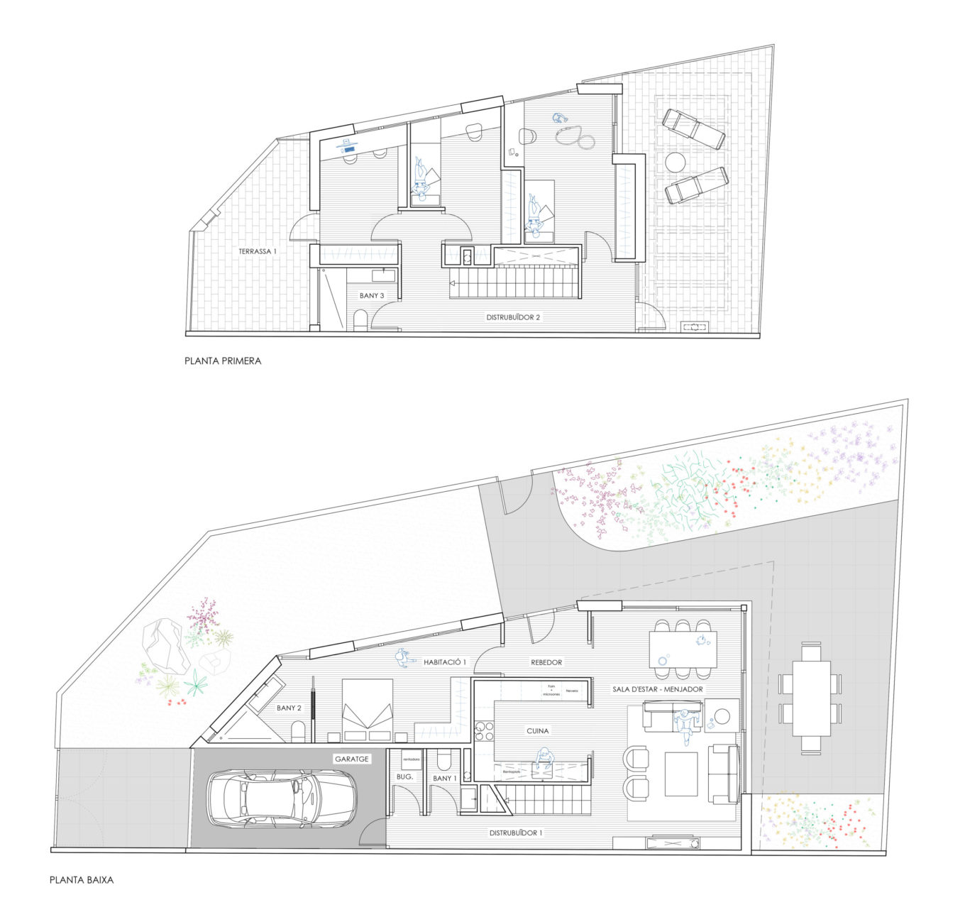 Se ha diseñado un edificio con un carácter más bien neoplasticista, apostando por formas geométricas básicas y elegantes. De esta composición destaca la apertura hacia el jardín, que garantiza la relación con el exterior y saca provecho de la orientación sur.