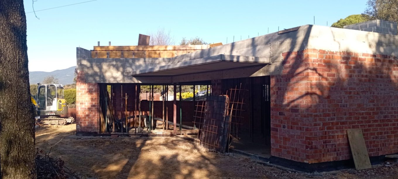 Vivienda configurada a partir de un volumen de una sola planta donde se yuxtaponen dos prismas rectangulares que acaban adquiriendo la forma de ‘T’. El punto de intersección entre estos dos prismas se ha enfatizado gracias a la incorporación de un elemento longitudinal de vidrio que permite la entrada de luz natural en el interior.