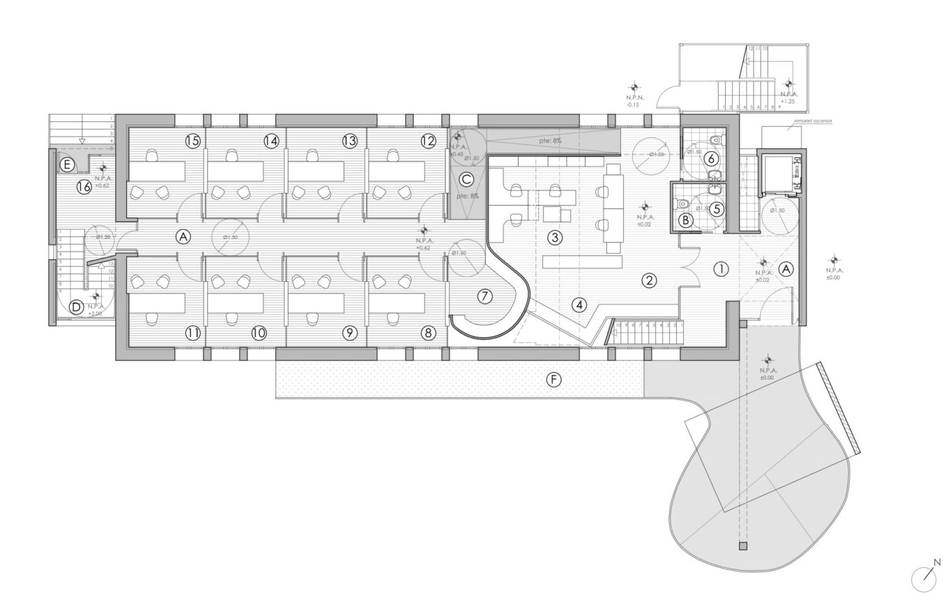 A los extremos del cuerpo principal también se han planteado dos nuevos núcleos de acceso que permiten la comunicación interna entre las plantas del edificio.