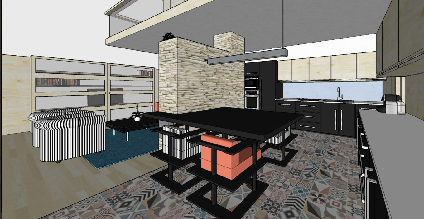 Este conjunto volumétrico se enfatiza con los propios materiales de la construcción, la madera y la piedra, que se combinan para dar un mayor carácter al edificio.