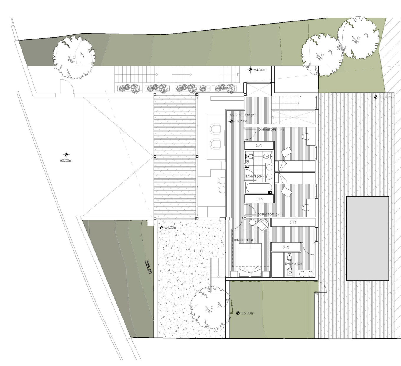 En este proyecto la topografía ha sido un factor clave a la hora de diseñar la volumetría del edificio.