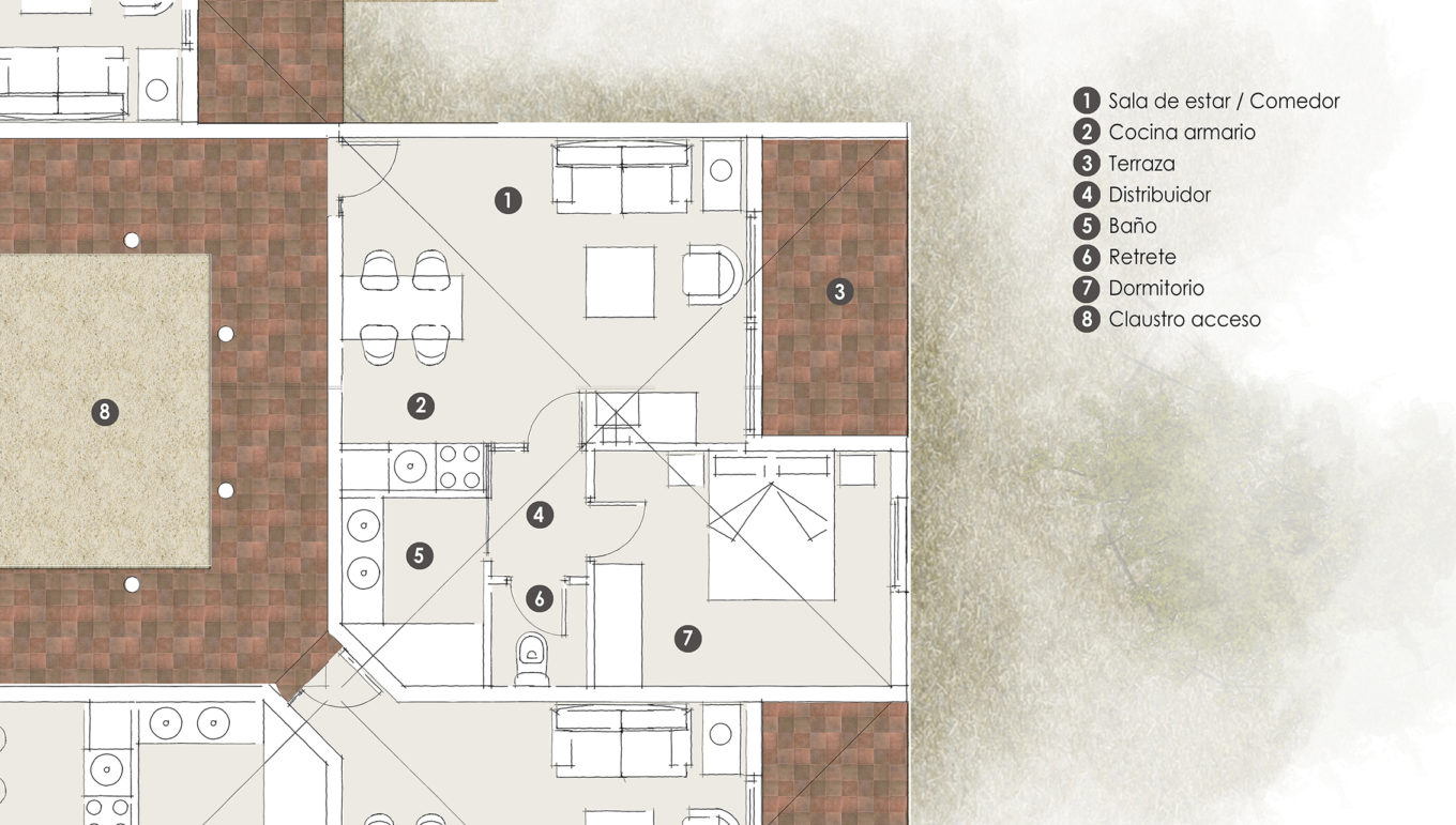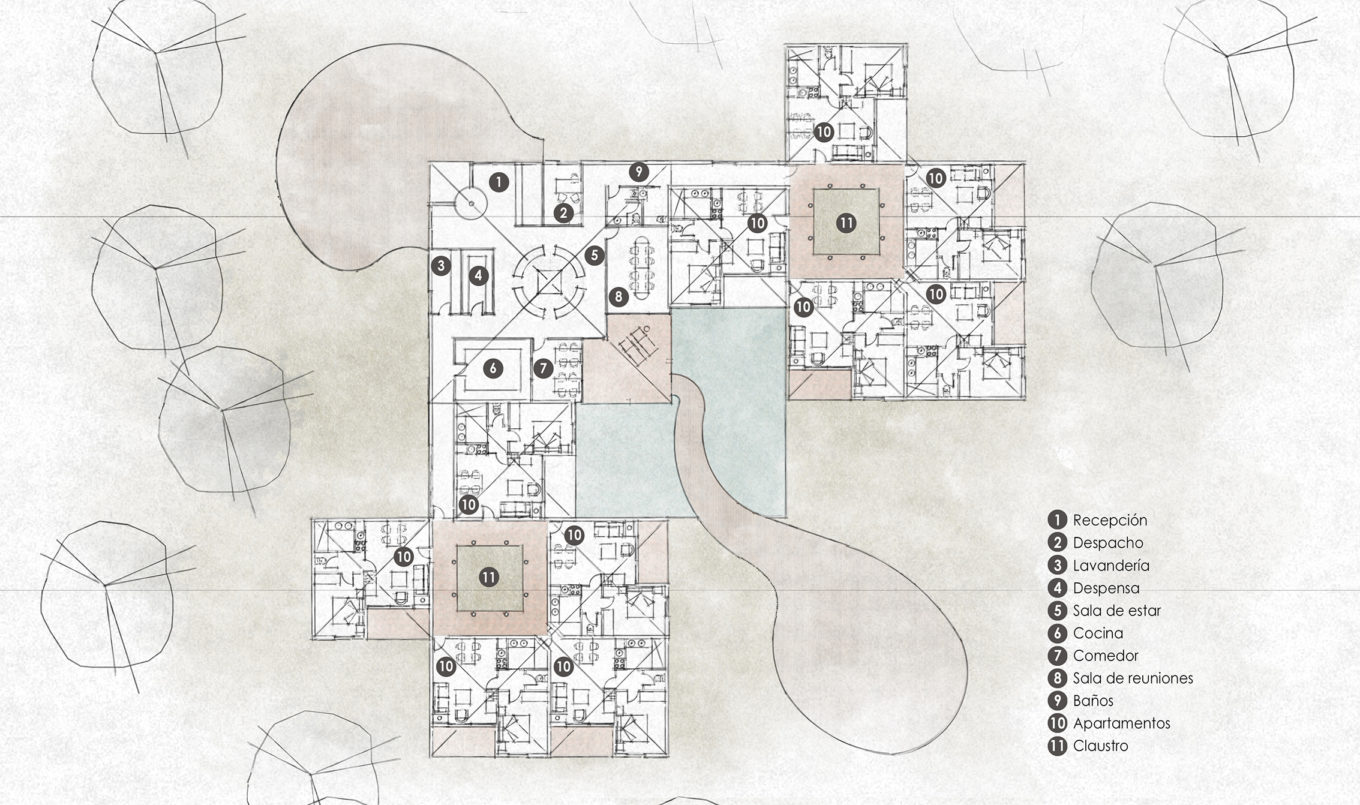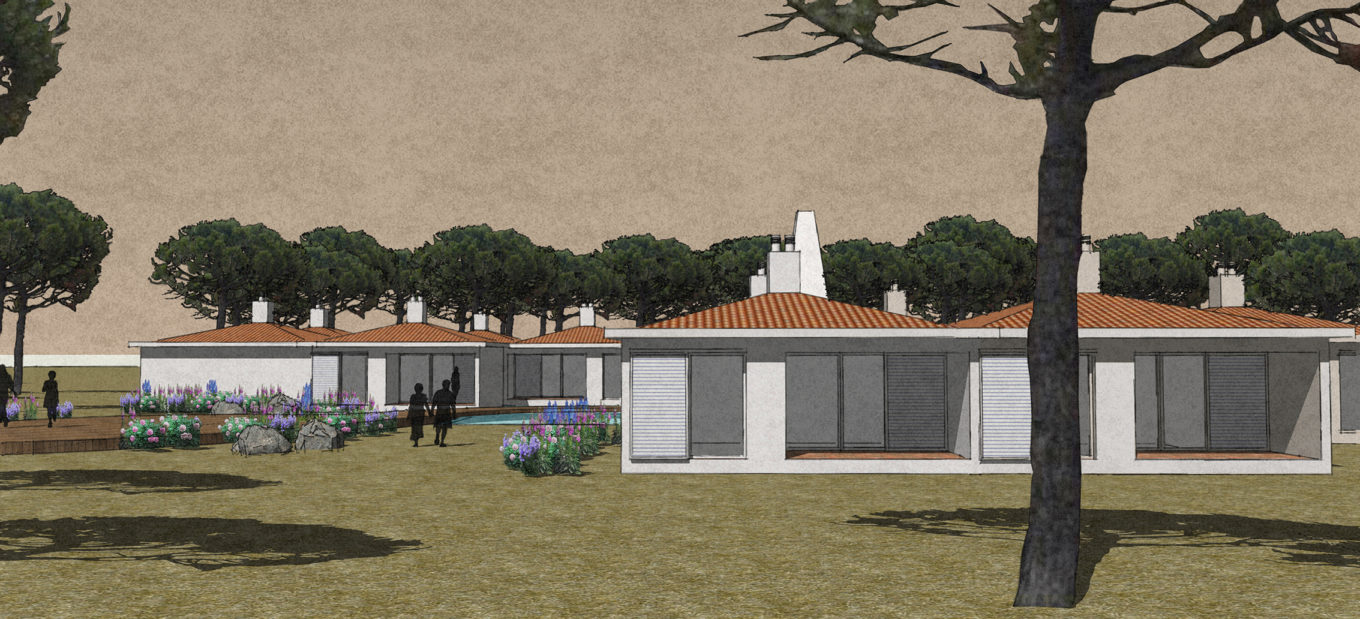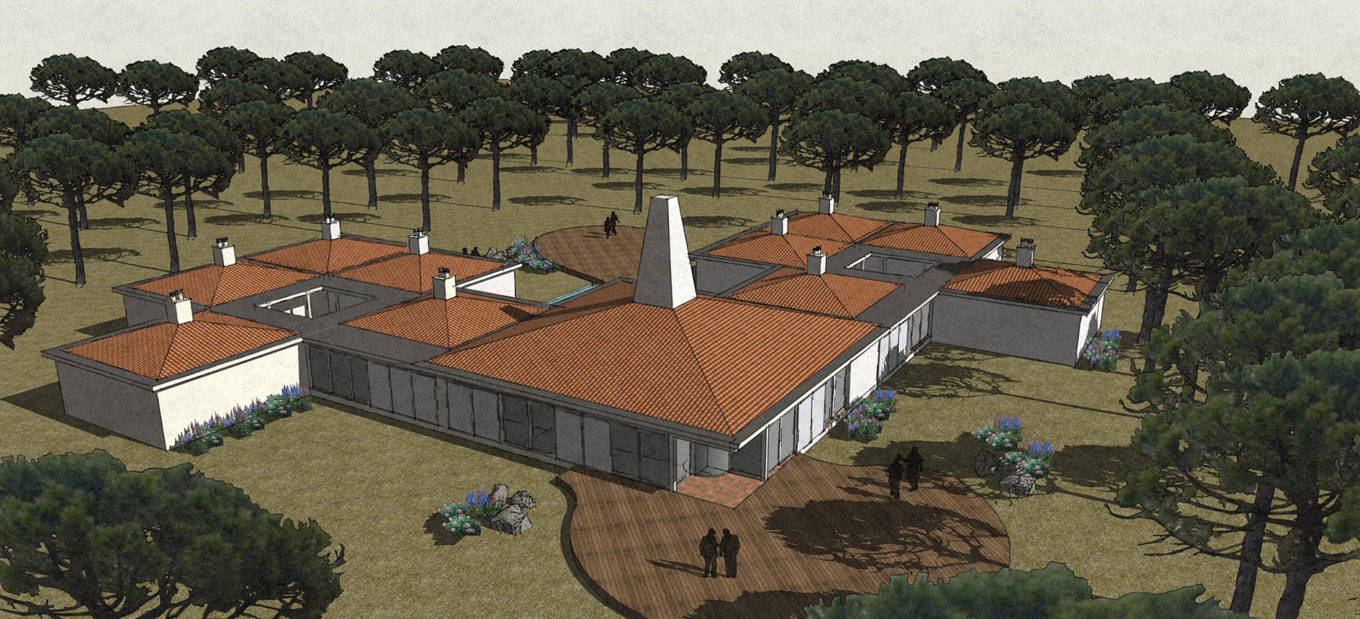 Proyecto del Centro de Retiros de la Costa Brava, un espacio donde compartir experiencias y, a la vez, donde poder disfrutar de un retiro individual. El edificio surge a partir de un conjunto de modulaciones cuadrangulares que se ramifican a lo largo del terreno. Con esta configuración, organizada sobre un eje de simetría central, se plantea que las piezas queden orientadas hacia la costa para tener vistas hacia el mar desde cada punto del programa.