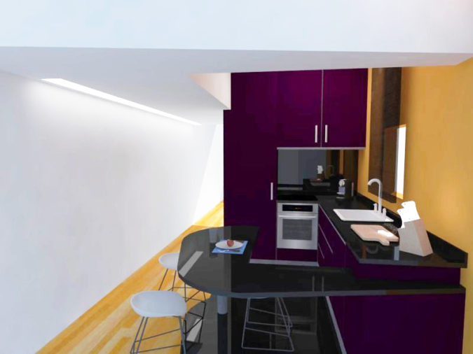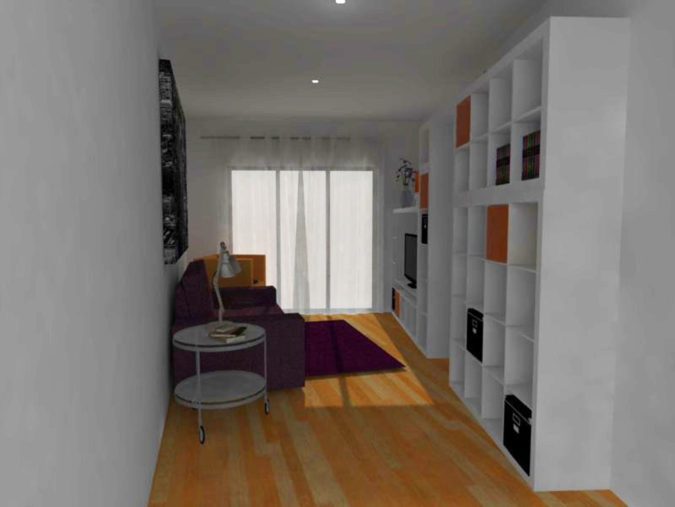 En la reforma del apartamento, se plantea unificar ciertas estancias de la vivienda para conseguir una mayor amplitud en los espacios. Esto ha sido posible gracias al diseño abierto de la cocina, donde se aprovecha para establecer una gamma de colores en los elementos para dar uniformidad al nuevo conjunto.