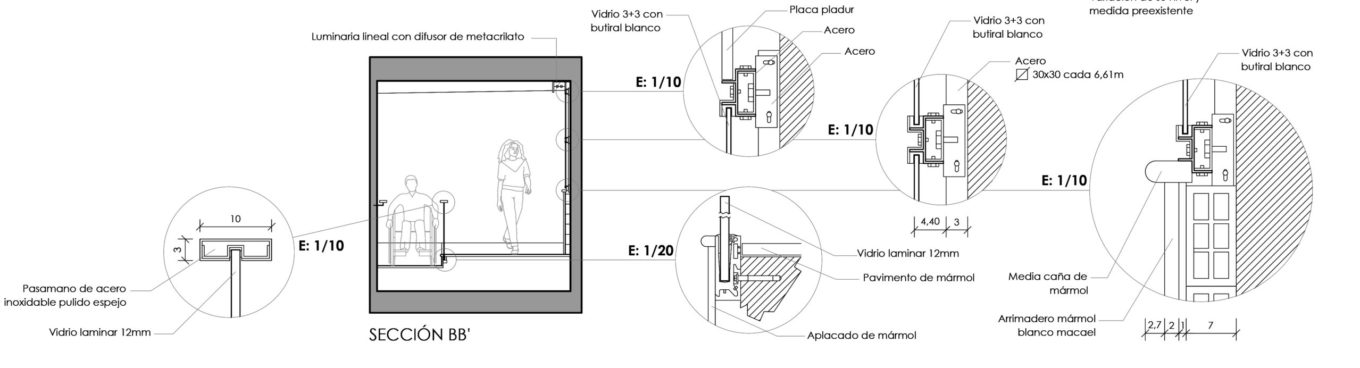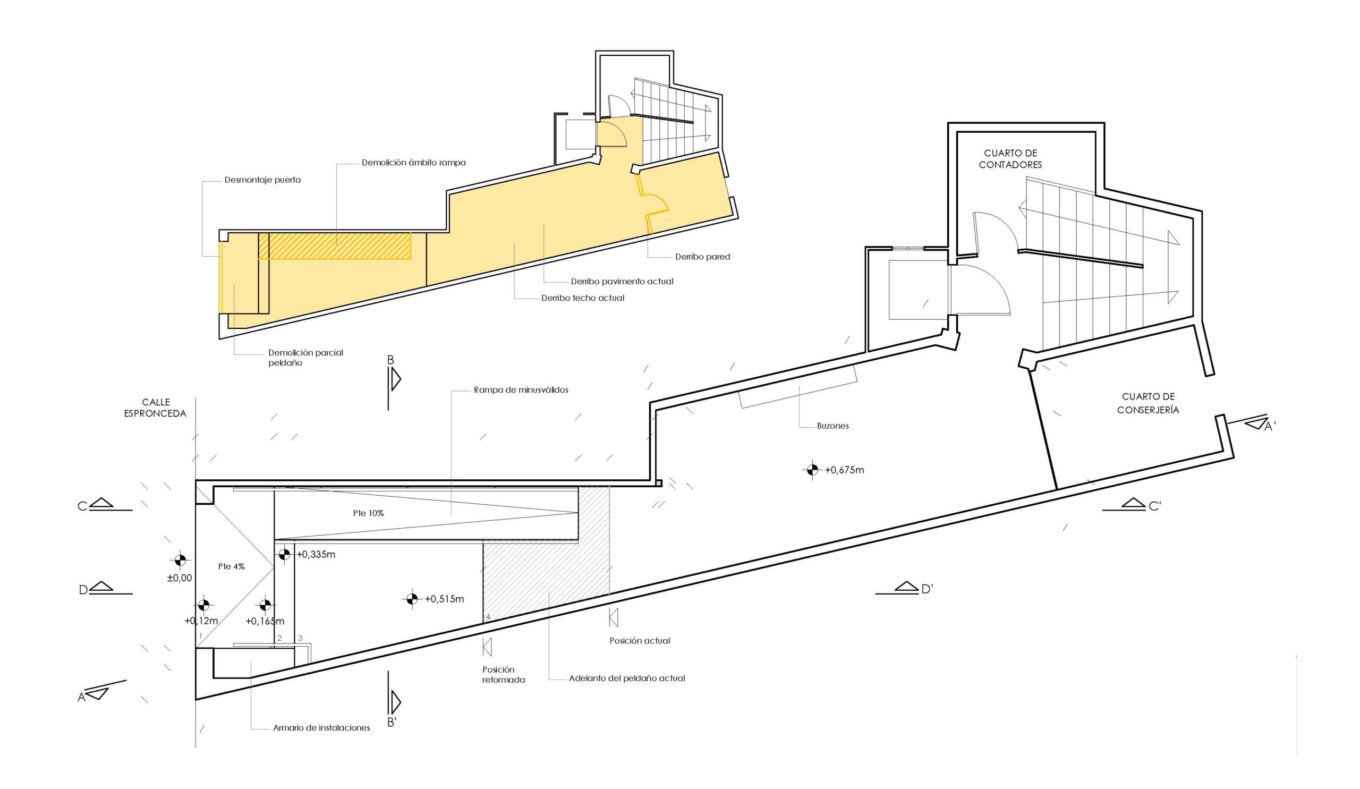 En la reforma del vestíbulo se ha planteado la inclusión de una nueva rampa de acceso para facilitar la accesibilidad.