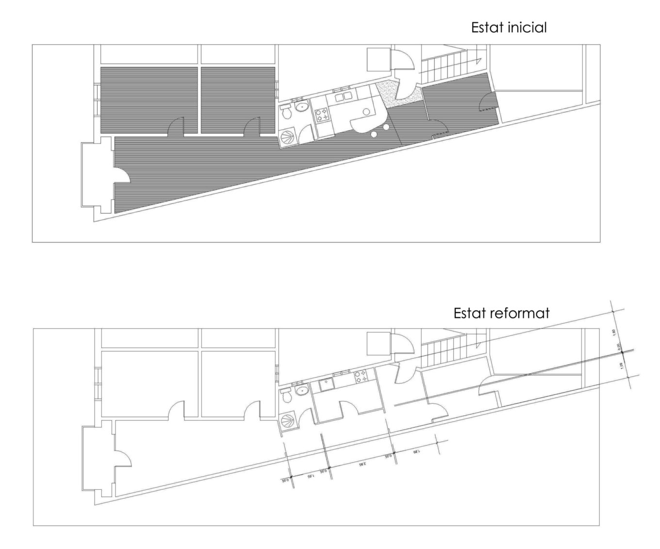 Este proyecto plantea dos actuaciones distintas en un edificio plurifamiliar. Por una parte, define la reforma interior de uno de los apartamentos del bloque y, por la otra, plantea la reforma del vestíbulo del edificio para adaptarlo a los criterios de accesibilidad.