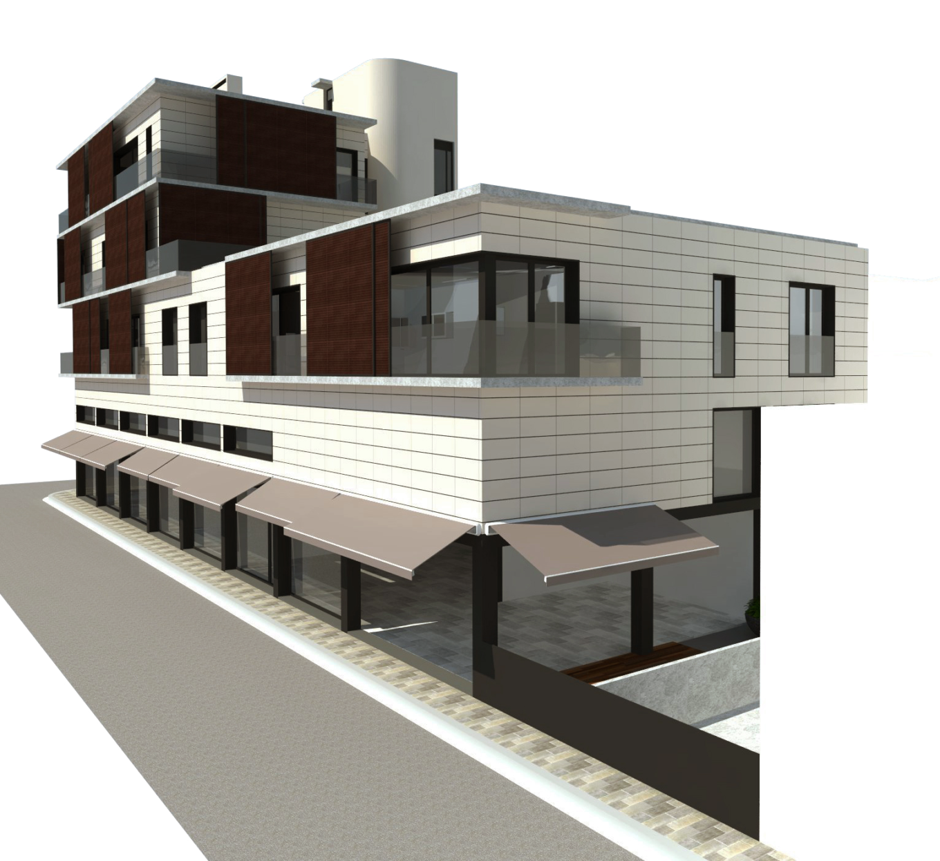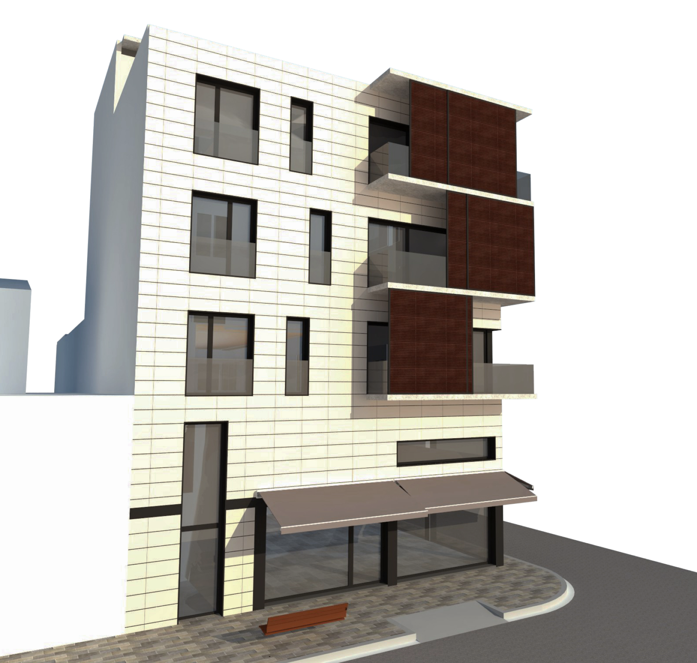 En este proyecto se plantea el diseño de un nuevo edificio plurifamiliar configurado en un volumen de 4 plantas sobre rasante, planteando un gran espacio comercial en la planta baja (con altillo) y un conjunto de ocho viviendas repartidas en las plantas superiores.